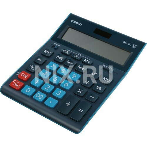 Калькулятор настольный Casio 12 разрядов, двойное питание, 210*155 мм, голубой (GR-12С-LB)
