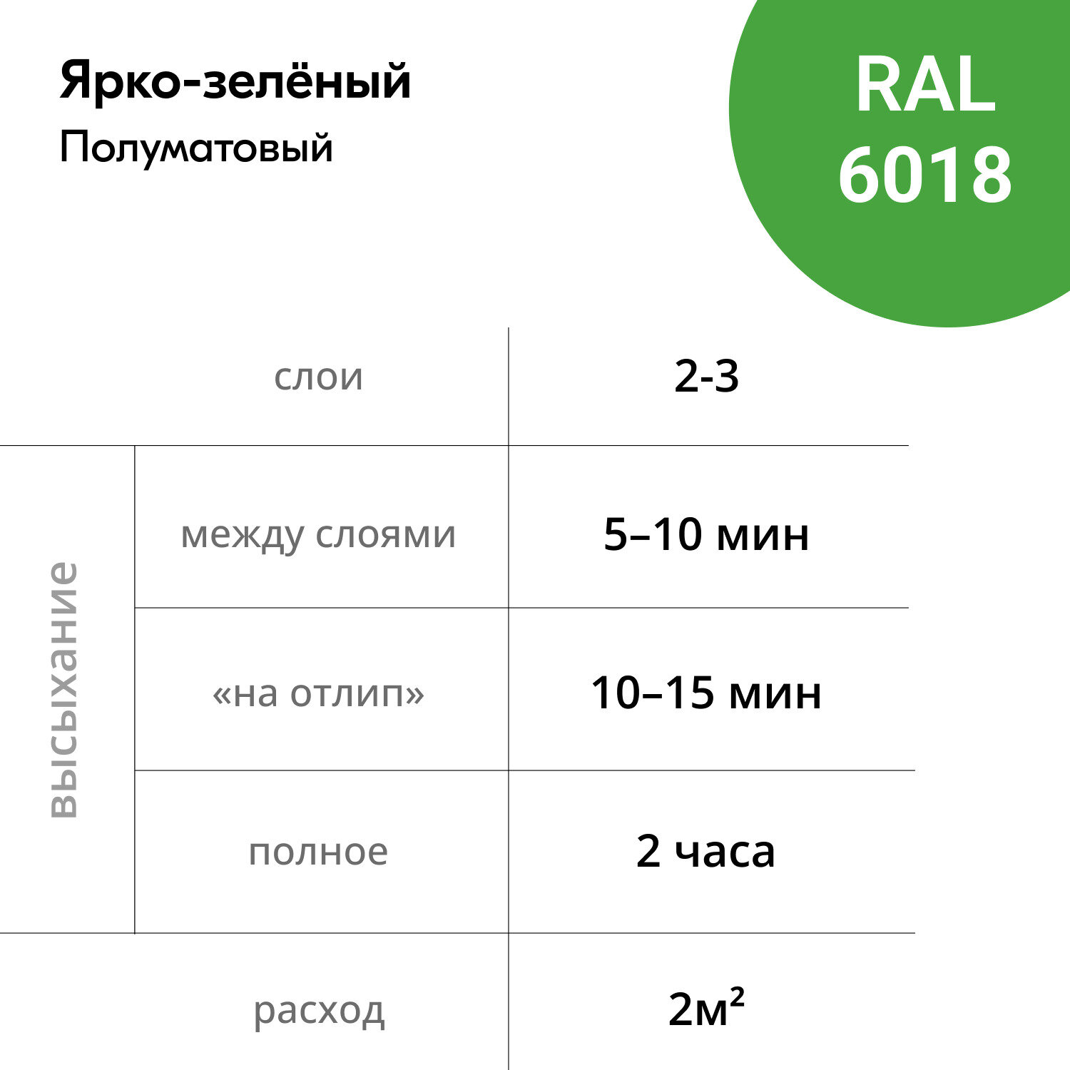 | Время высыхания | 2 часов |