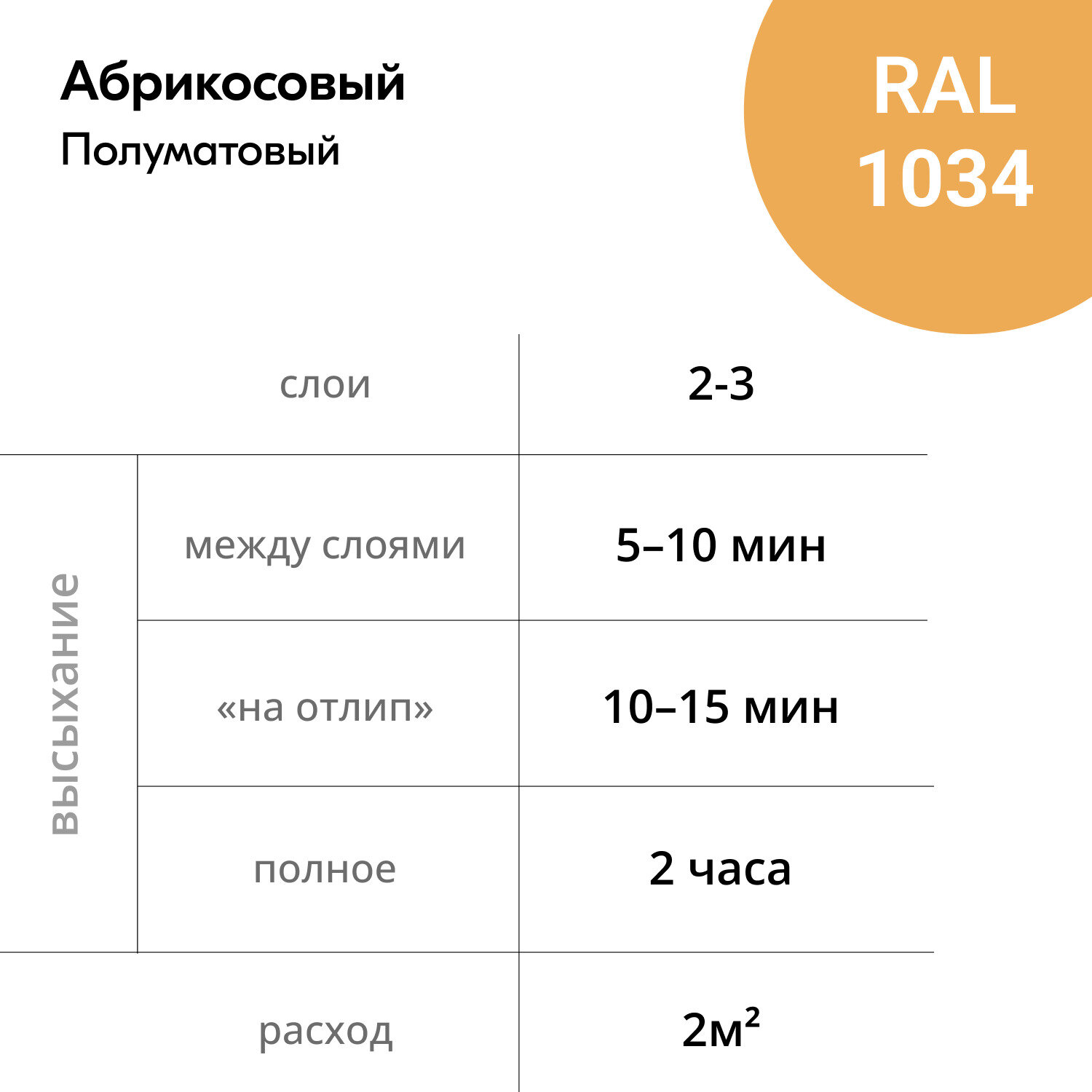 | Время высыхания | 2 часов |