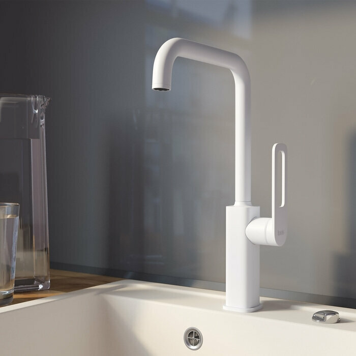 Смеситель для кухни IDDIS Bridge Slide SLIWT00i05 однорычажный с высоким изливом белый матовый