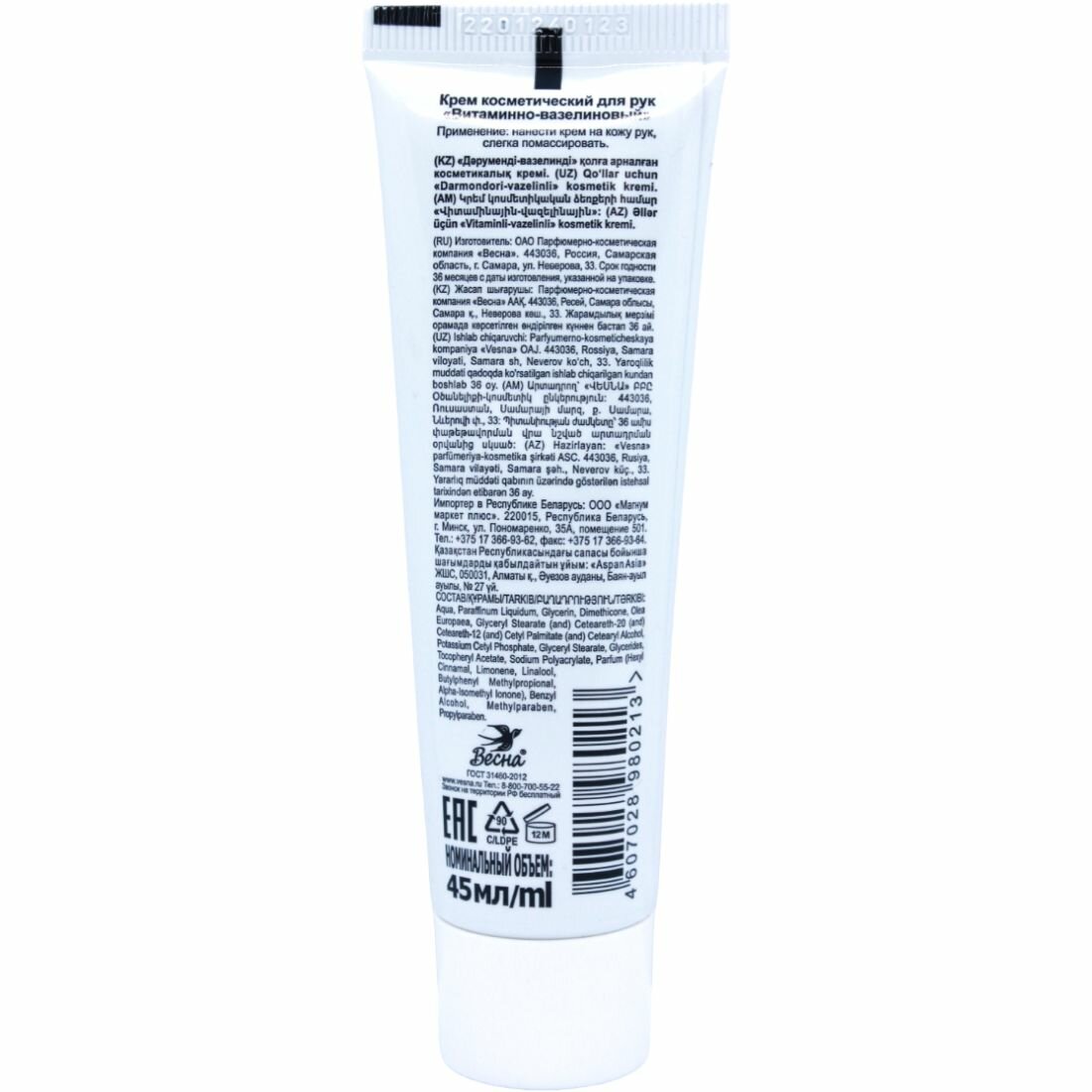 Весна Крем для рук "Витаминно-вазелиновый", 45 мл