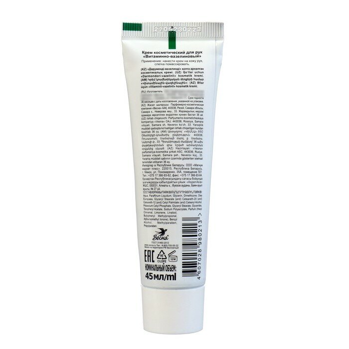 Весна Крем для рук Витаминно-вазелиновый, 45 мл