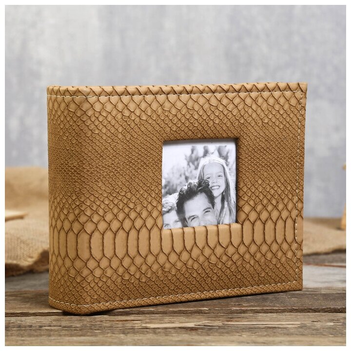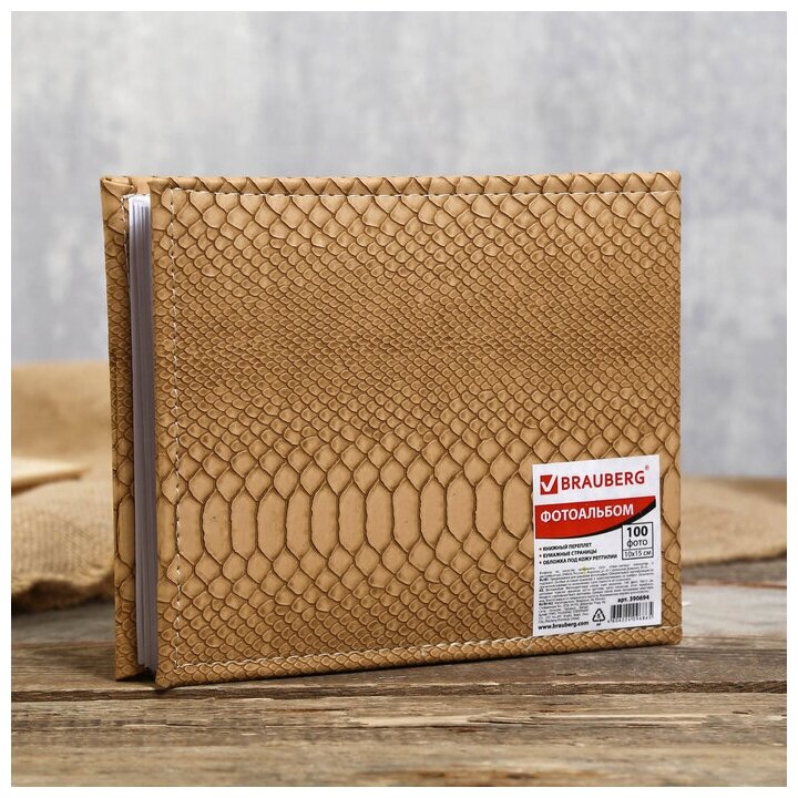 Фотоальбом BRAUBERG на 100 фотографий 10х15 см, обложка под кожу рептилии, бумажные страницы, бокс, бежевый, 390694, 390694