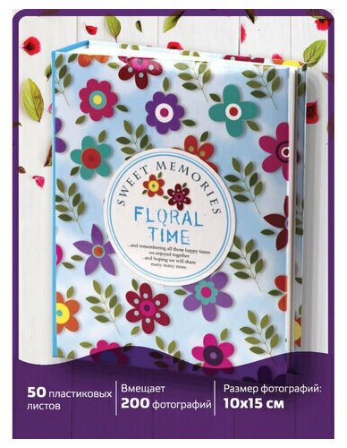 Фотоальбом BRAUBERG на 200 фото 10х15 см, твердая обложка, Цветочки, разноцветный, 391119