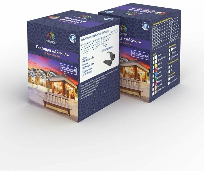 Гирлянда Neon-Night 255-037 Айсикл светодиодный 2.4 х 0.6 м белый провод 220В диоды тепло-белые