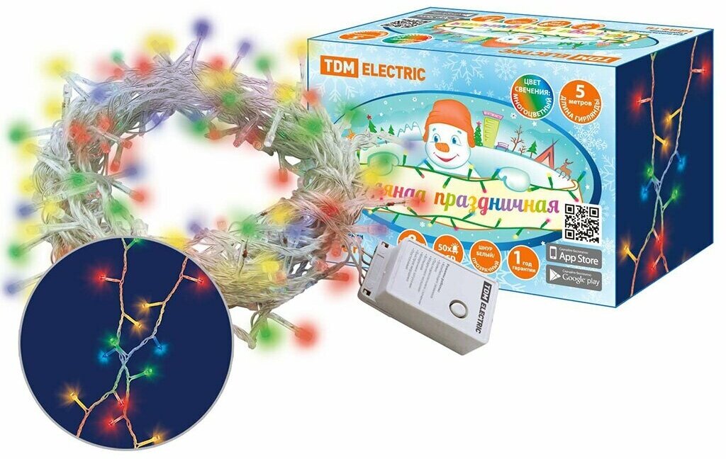 Гирлянда TDM ELECTRIC СГ50, 5 м, 50 ламп, разноцветные диоды/прозрачный провод