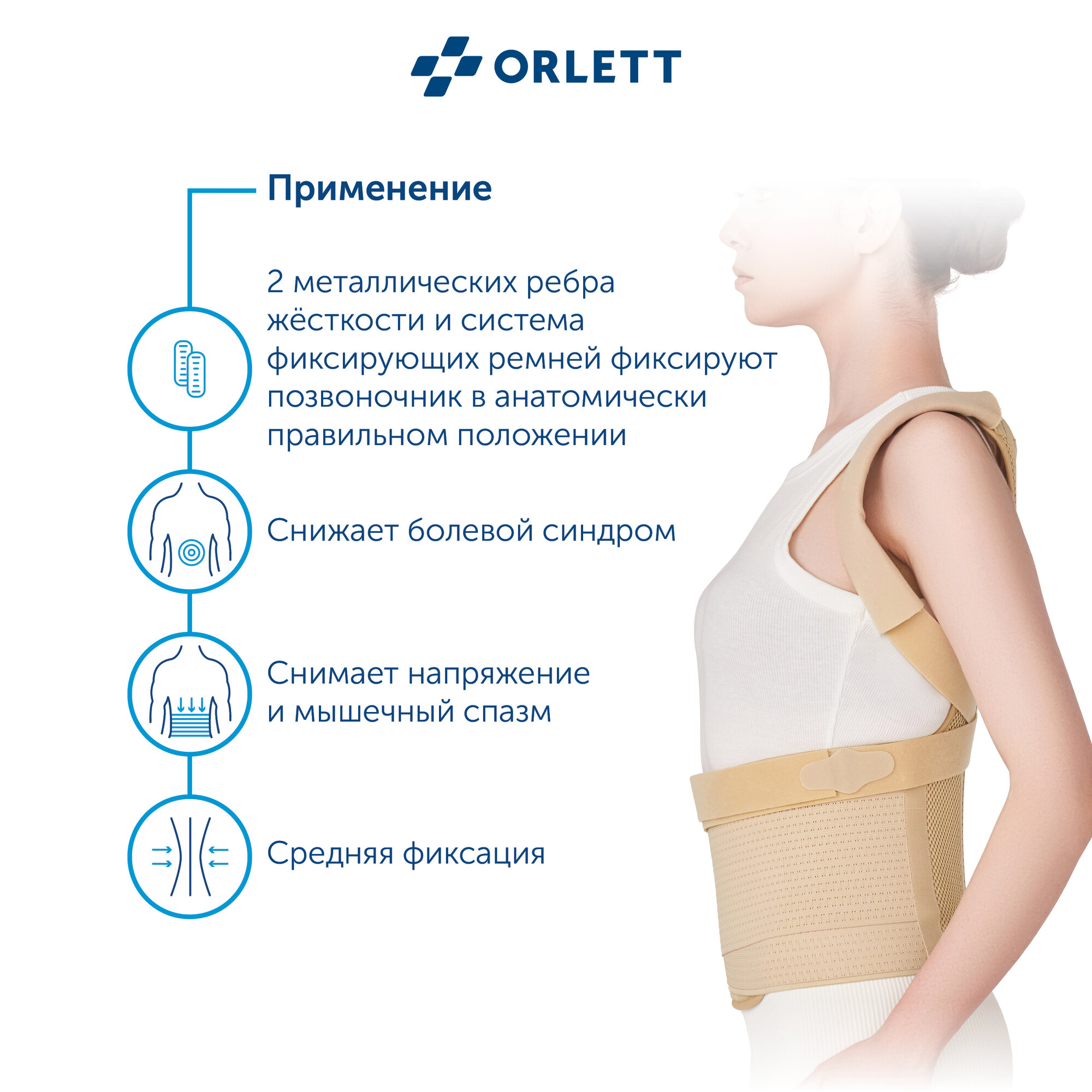 Корректор осанки ортопед. с 2-мя метал. ребрами жест., ORLETT арт. TLSO-250(A) короткий