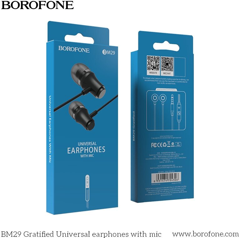 Гарнитура BOROFONE BM29 Gratified 3.5 мм, вставная, 1.2м (черный), шт BM29