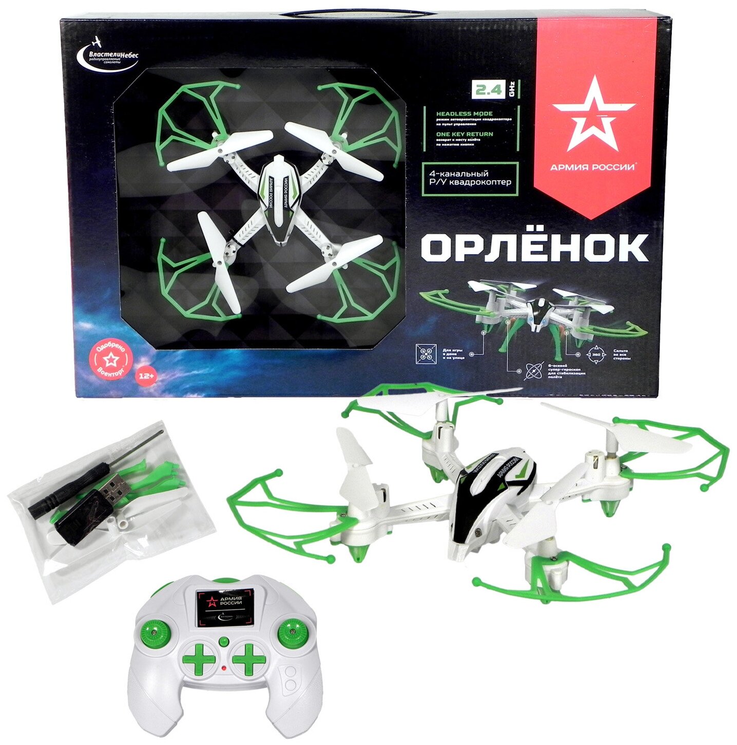 Купить Квадрокоптер р/у Властелин небес Орлёнок ВН3452, белый/зеленый