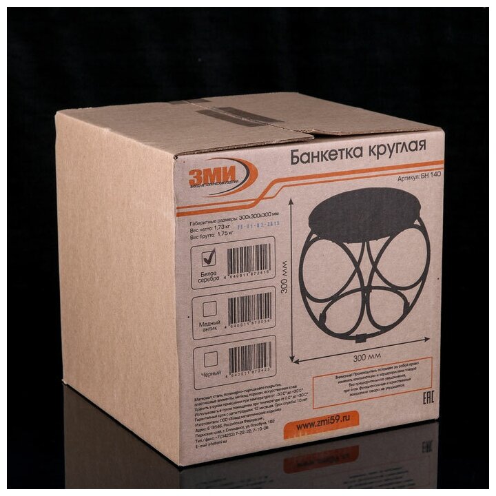 Банкетка Кругл МАЛ БЕЛ Серебро Соликамск 300*300*300 БН140 БС .