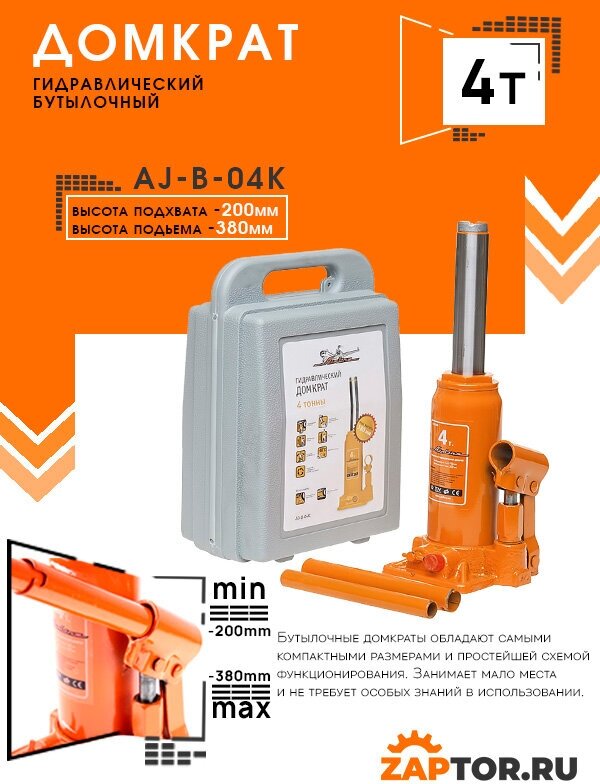 СохранитьДомкрат бутылочный 4т в кейсе (MIN - 195мм/MAX - 380мм) AJ-B-04K интересное:
