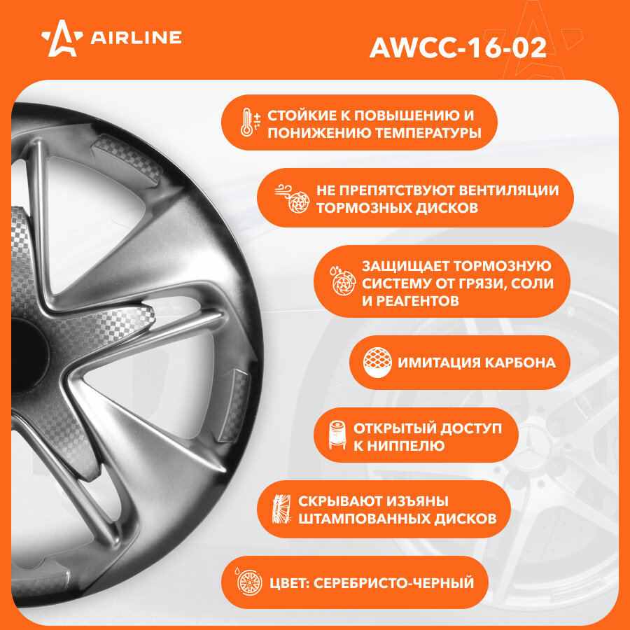 Awcc-16-02_Колпаки Колесные! 16' 'Супер Астра +', Серебристо-Черный, Карбон, Компл. 2Шт. AIRLINE арт. AWCC1602