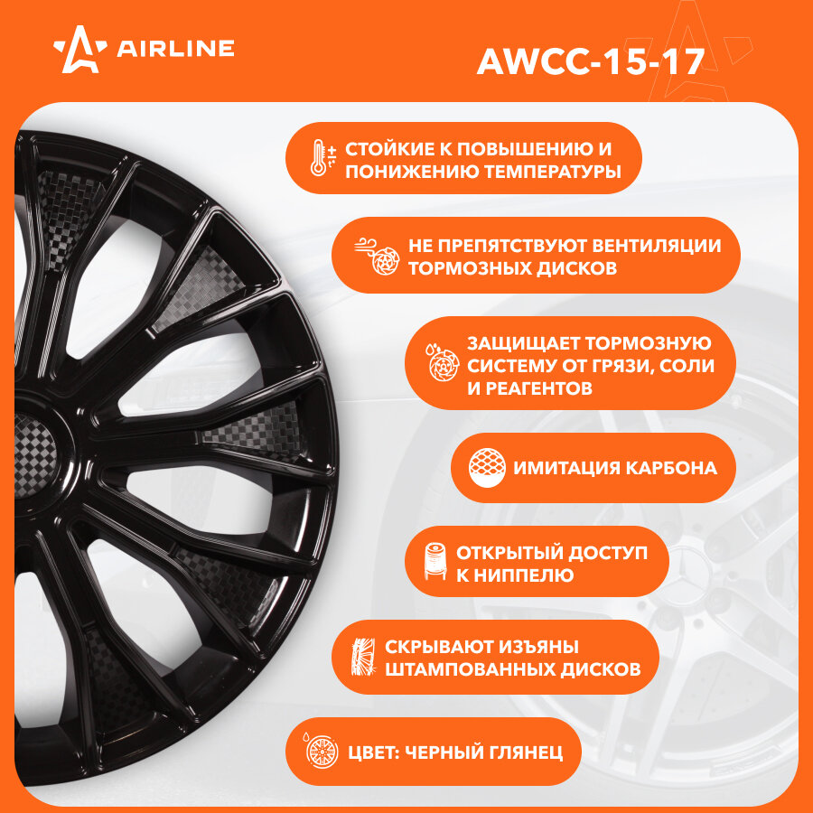 AIRLINE AWCC-15-17 (AWCC1517) колпаки колесные 15 волтек, черный глянец, карбон, компл. 2 шт.\
