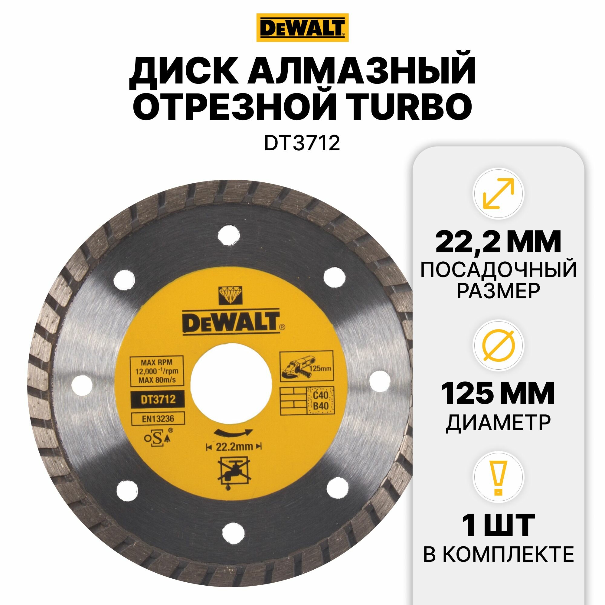 Круг алмазный De Walt Турбо 125 x 22,2 мм (DT 3712)