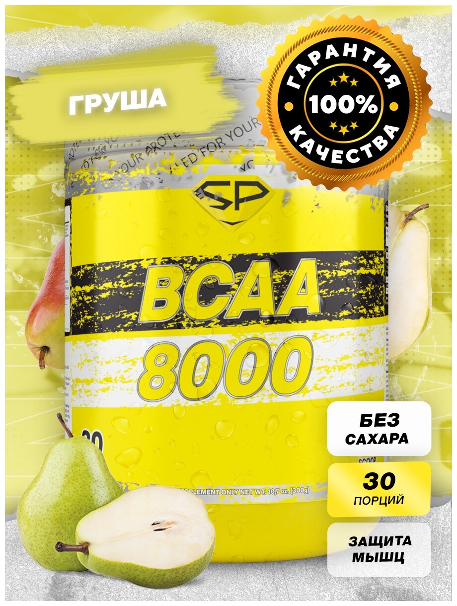 Аминокислоты комплекс STEELPOWER ВСАА 2:1:1 (БЦАА) для похудения без сахара без углеводов / BCAA 8000, 300 гр, Груша