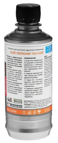 LAVR LN1435 Преобразователь ржавчины (флакон) (310 мл.); LAVR