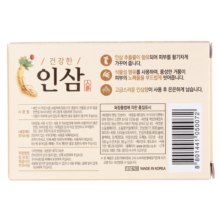 CLIO Мыло туалетное женьшень Ginseng soap 100g