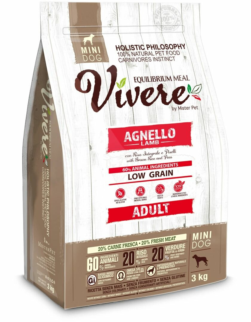 Сухой корм VIVERE LOW GRAIN ADULT MINI LAMB низкозерновой для взрослых собак маленьких пород с ягненком (3 кг)