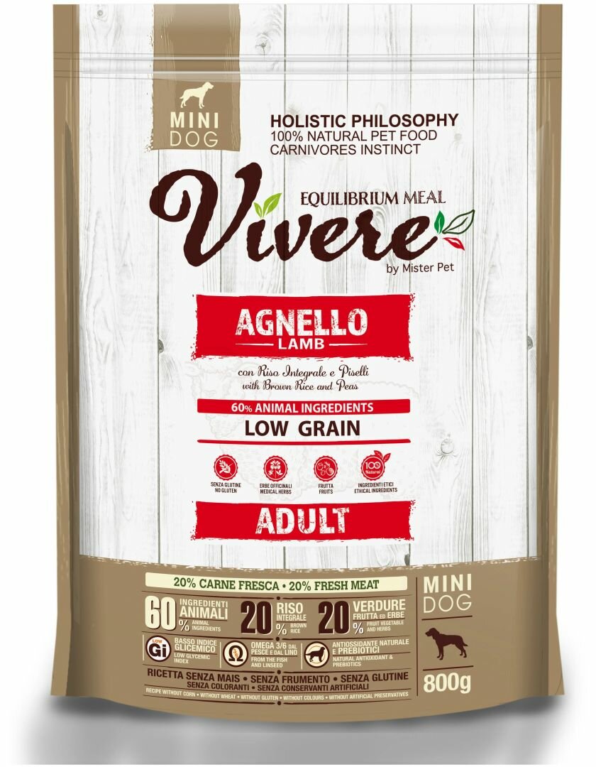 Vivere корм для собак малых пород, низкозерновой, ягненок 800 гр