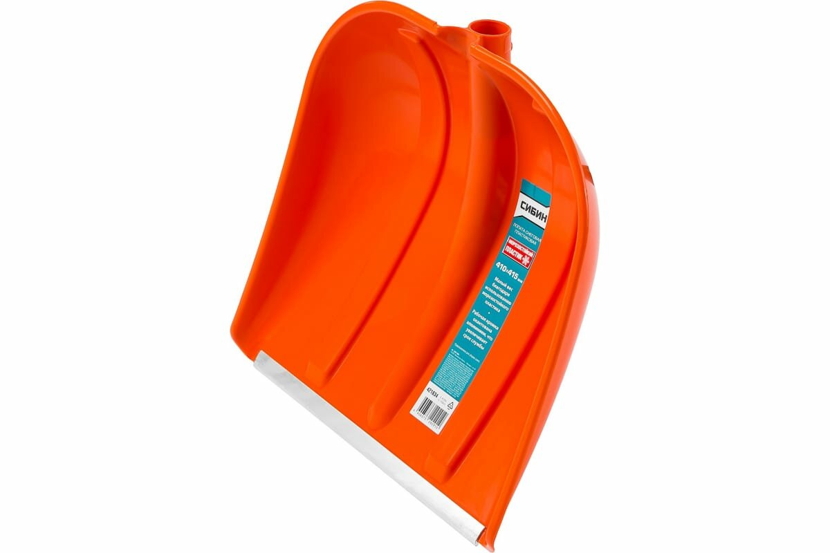 Лопата снеговая 410мм, пластиковая с алюминиевой планкой, без черенка, оранжевая, СИБИН 421834
