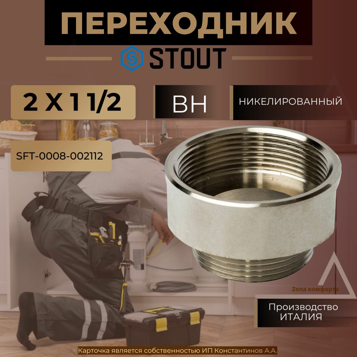 Переходник ВН никелированный 2"X1"1/2 STOUT