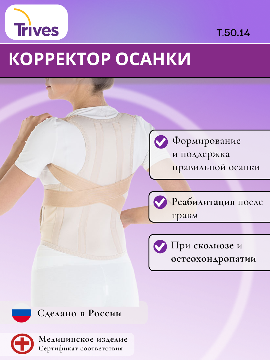 Корректор осанки Тривес Т.50.14 (Т-1774), размер L, высота 48 см, бежевый
