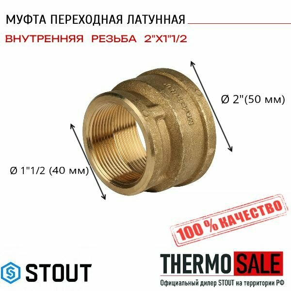 Муфта латунная резьбовая переходная STOUT - 2" x 1 1/2"