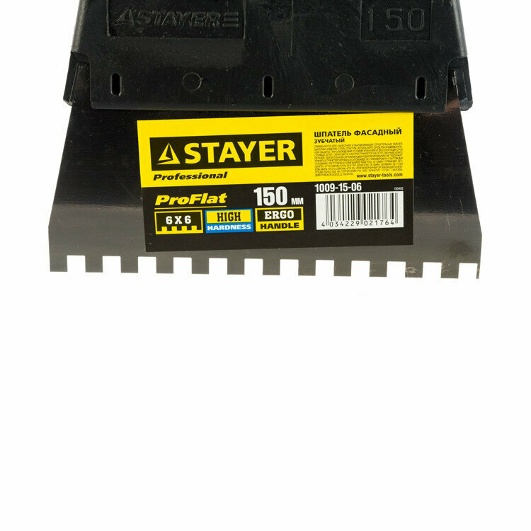 STAYER PROFlat, 150 мм, зуб 6 х 6 мм, пластиковая ручка, зубчатый, нержавеющий, фасадный шпатель, Professional (1009-15-06)