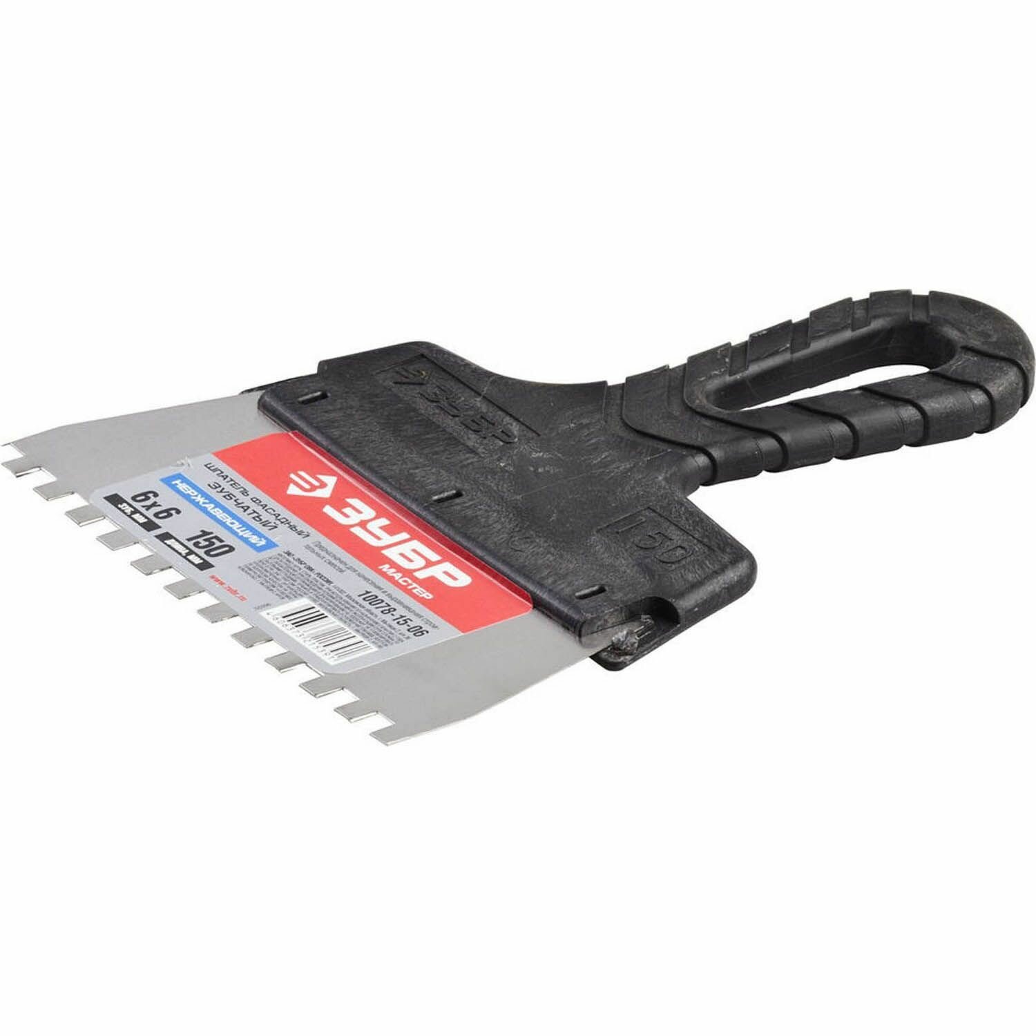 Купить ЗУБР 150 мм, зуб 6х6 мм, зубчатый пластиковая ручка, нержавеющий, Фасадный шпатель, мастер (10078-15-06)