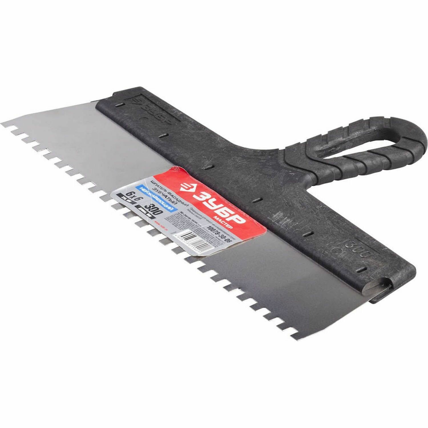 Купить ЗУБР 300 мм, зуб 6х6 мм, зубчатый пластиковая ручка, нержавеющий, Фасадный шпатель, мастер (10078-30-06)