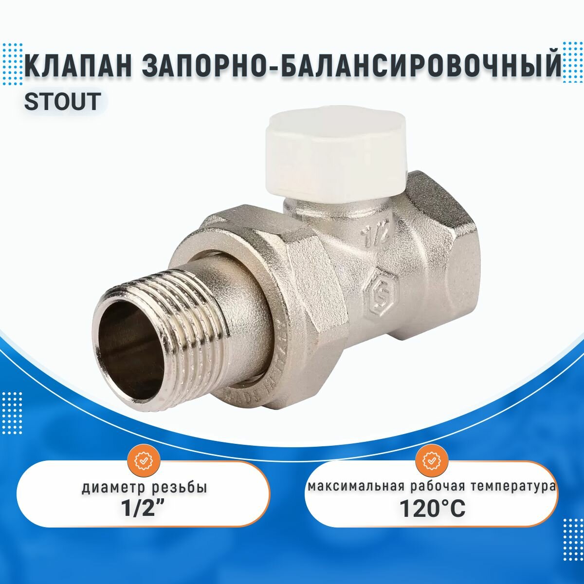 Клапан запорно-балансировочный прямой Stout 1/2" для радиатора SVL-1176-000015