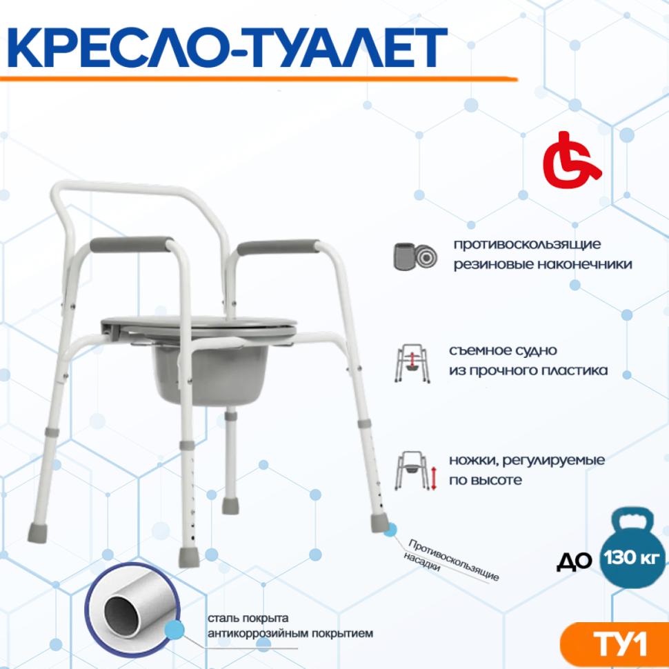 Cтул туалет Ortonica TU 1 для пожилых и инвалидов регулируемый по высоте ширина 46 см до 130 кг Код ФСС 23-01-02