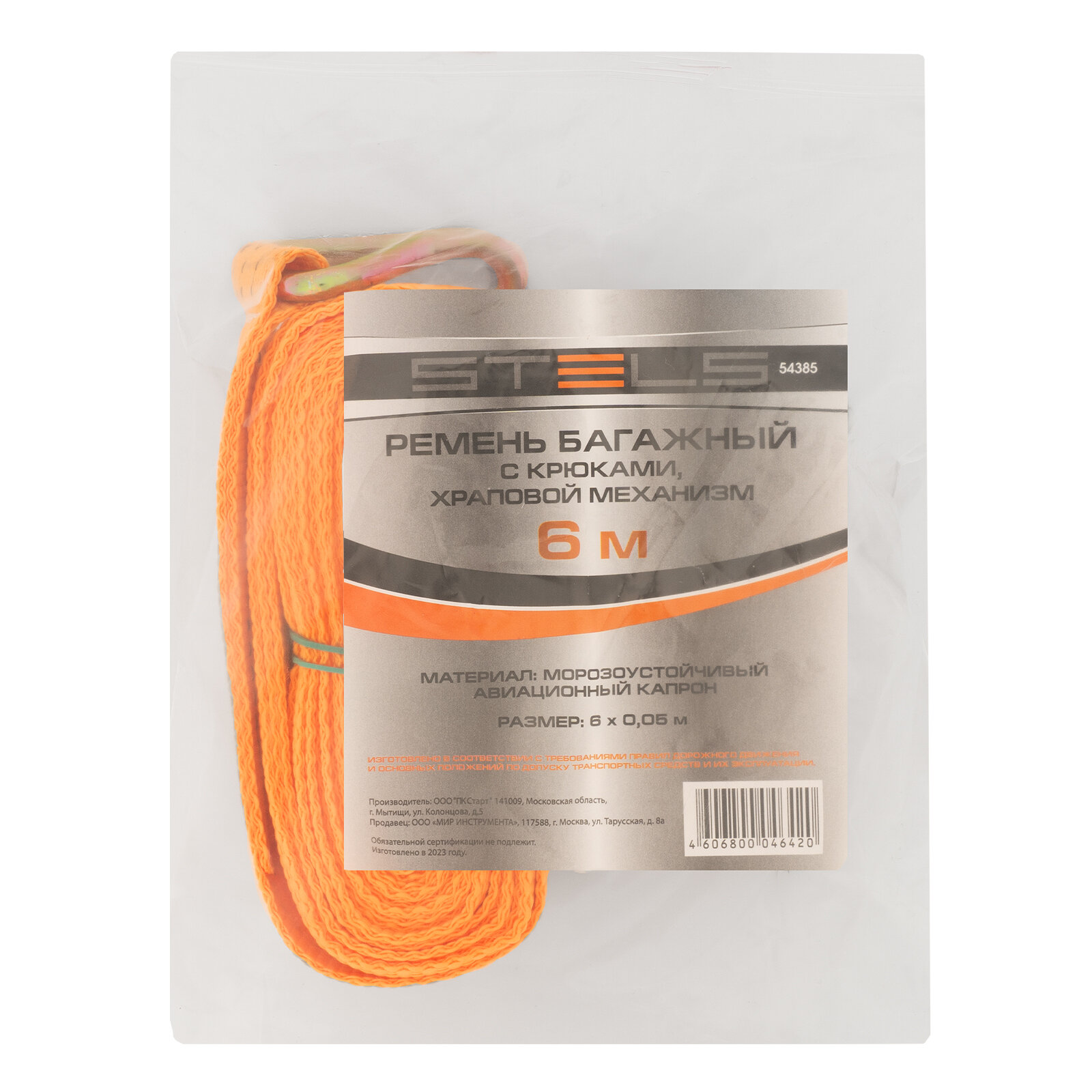 Ремень багажный с крюками, 0.05 х 6 м, храповой механизм Россия Stels ( 54385 )