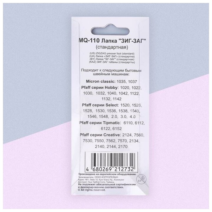 Micron MQ-110 Лапка для зигзага интересное: