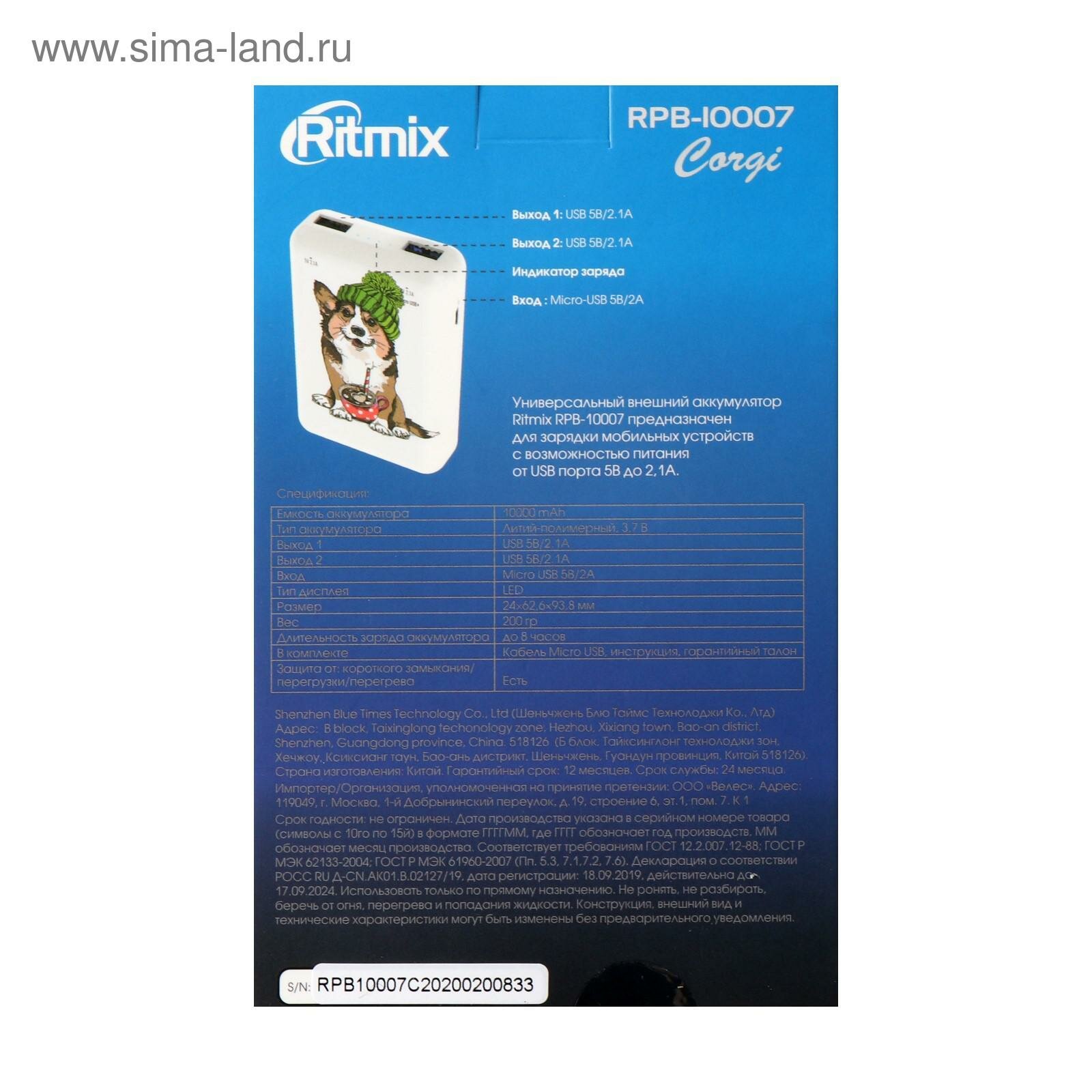 Купить Мобильные ЗУ RITMIX RPB-10007 Corgi
