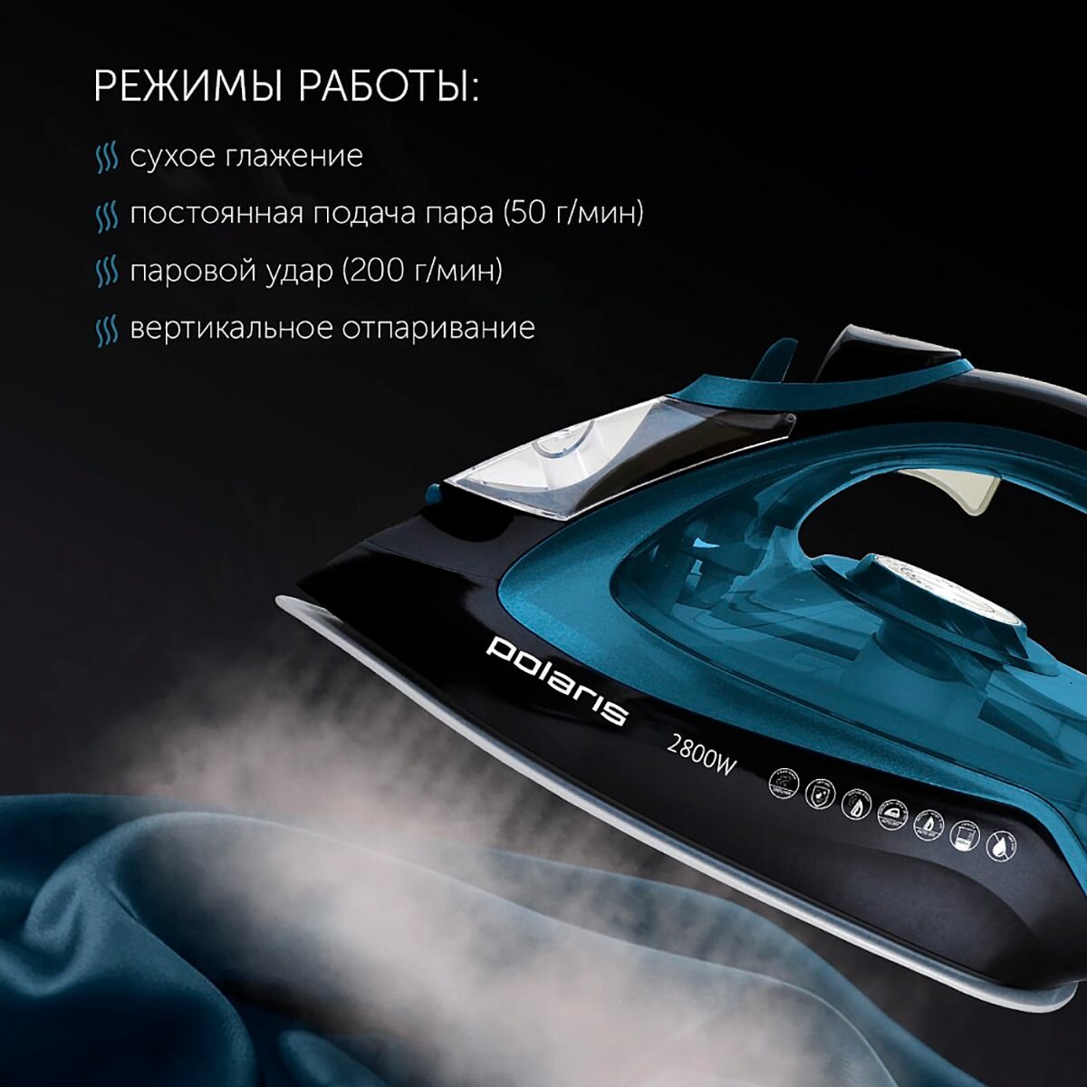 Утюг POLARIS PIR 2821AK 3m с отпар., черный/бирюзовый