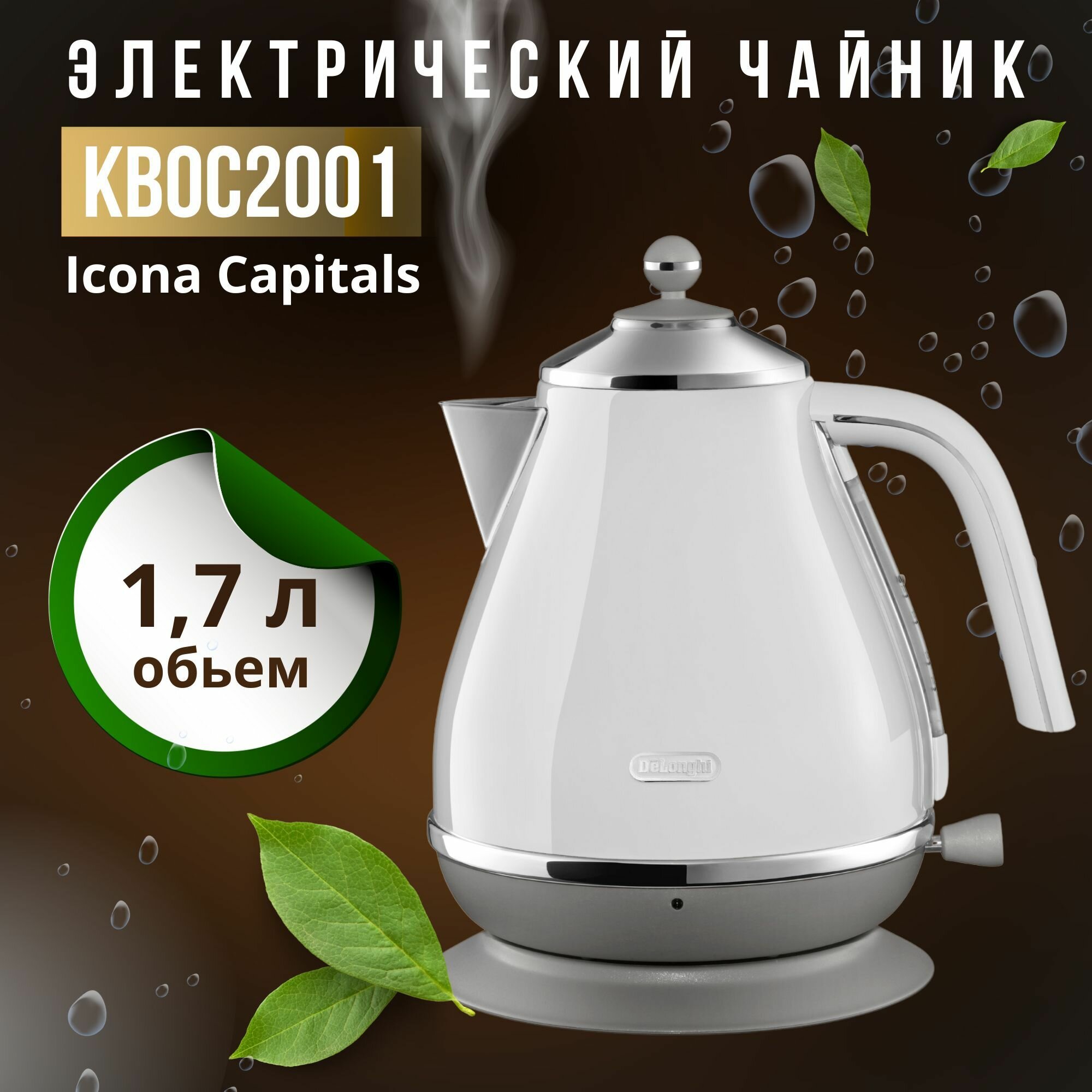 Электрический чайник DeLonghi Icona Capitals KBOC2001.W 2000 Вт, белый