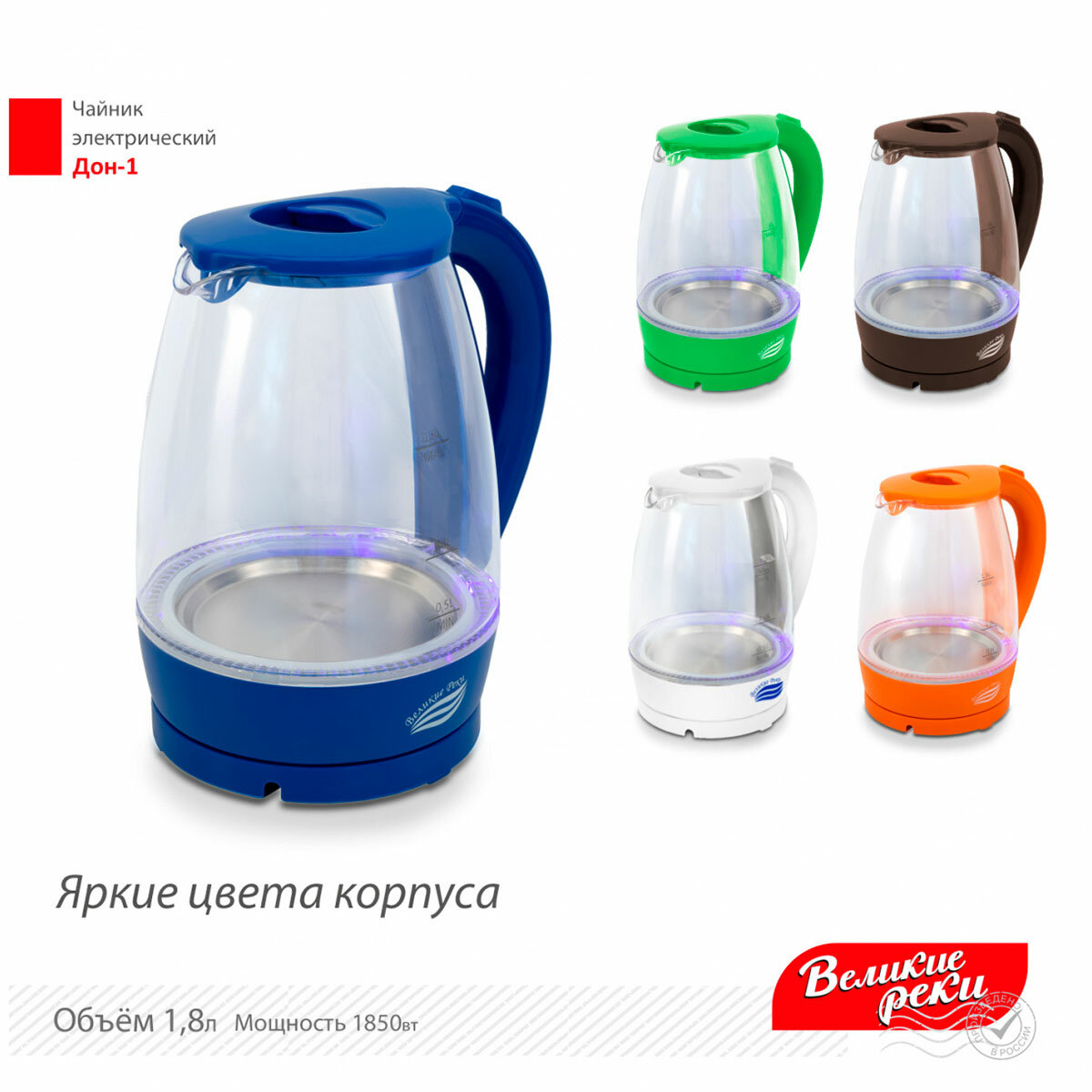 Чайник электрический Великие Реки Дон-1 1,8л, стекло, синий, 1850 Вт (8)