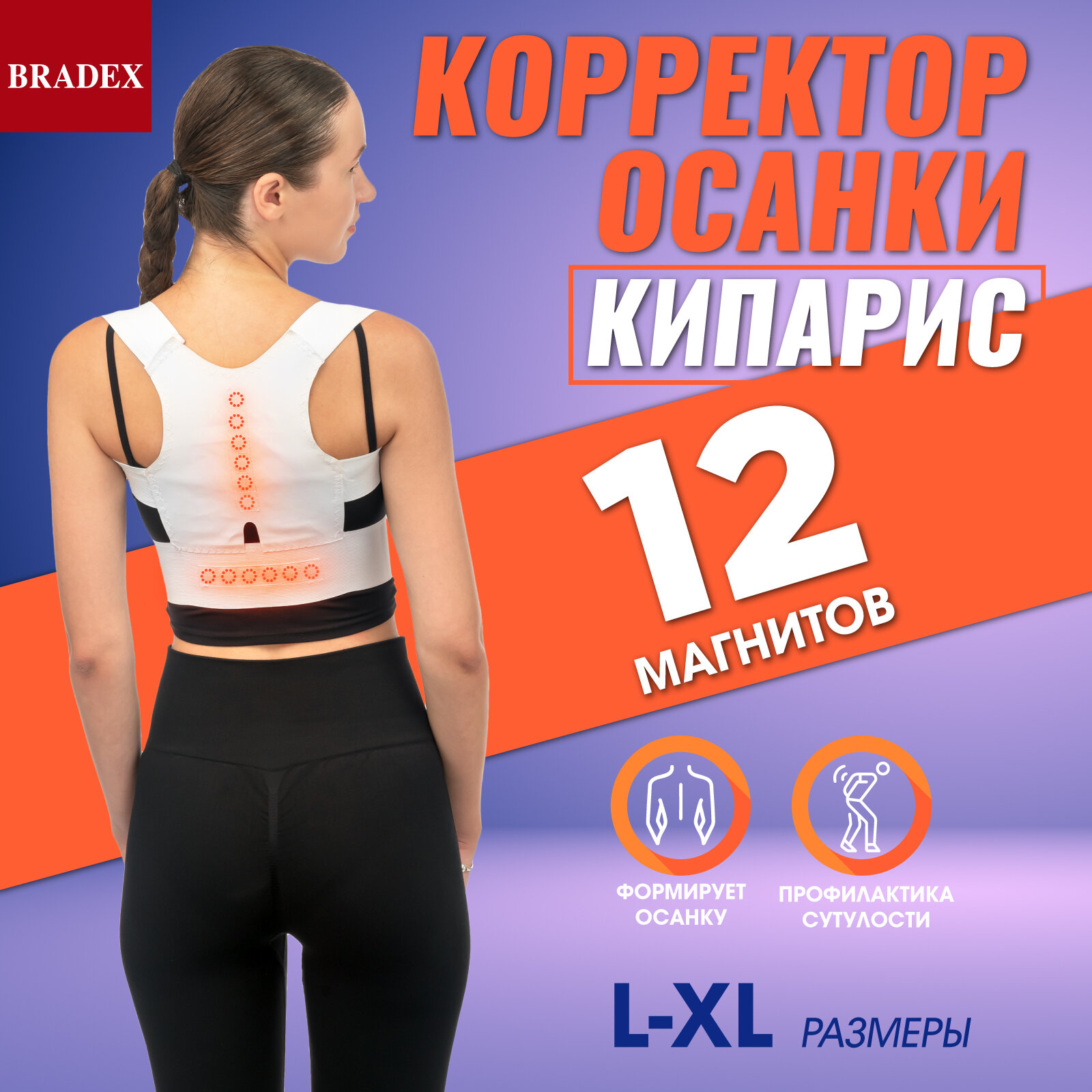 Корректор осанки Bradex для женщин и мужчин, талия 59-94 см, 12 магнитов