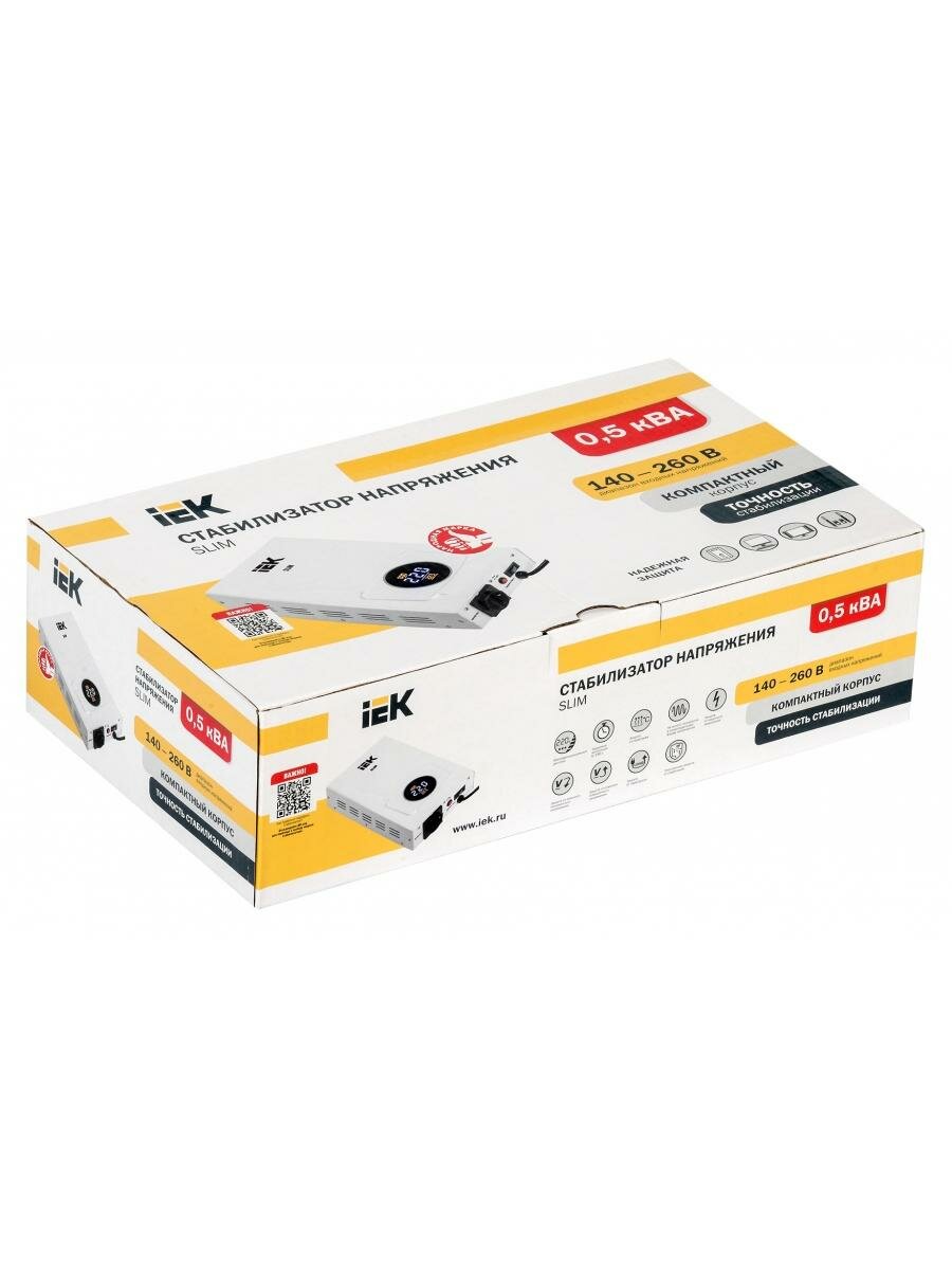 Стабилизатор напряжения однофазный IEK Slim 0.5кВА (IVS22-1-D05-09) белый