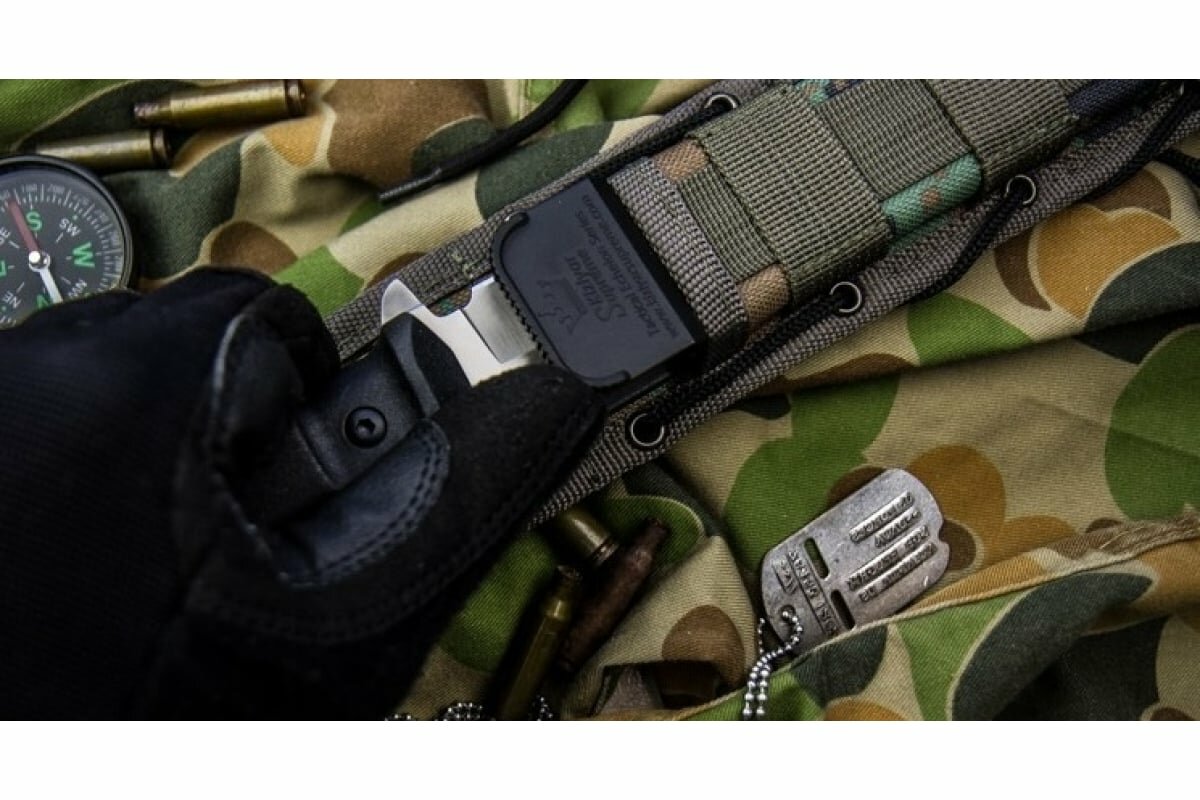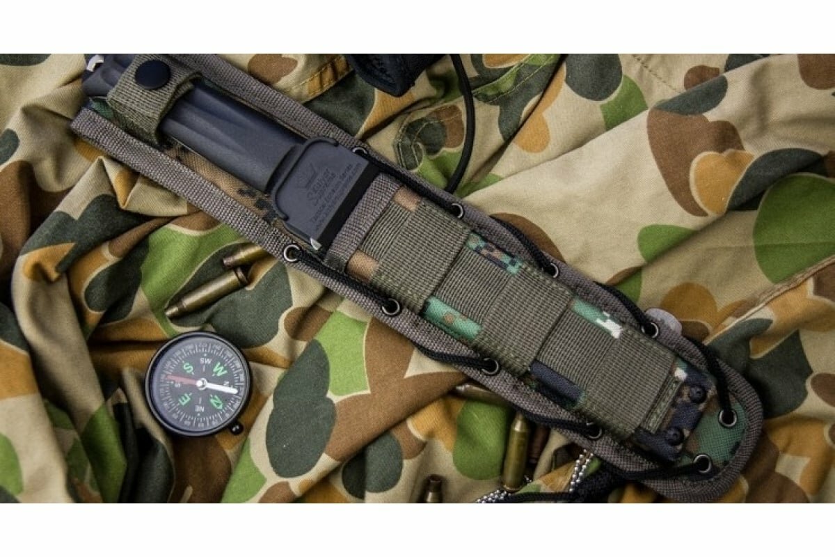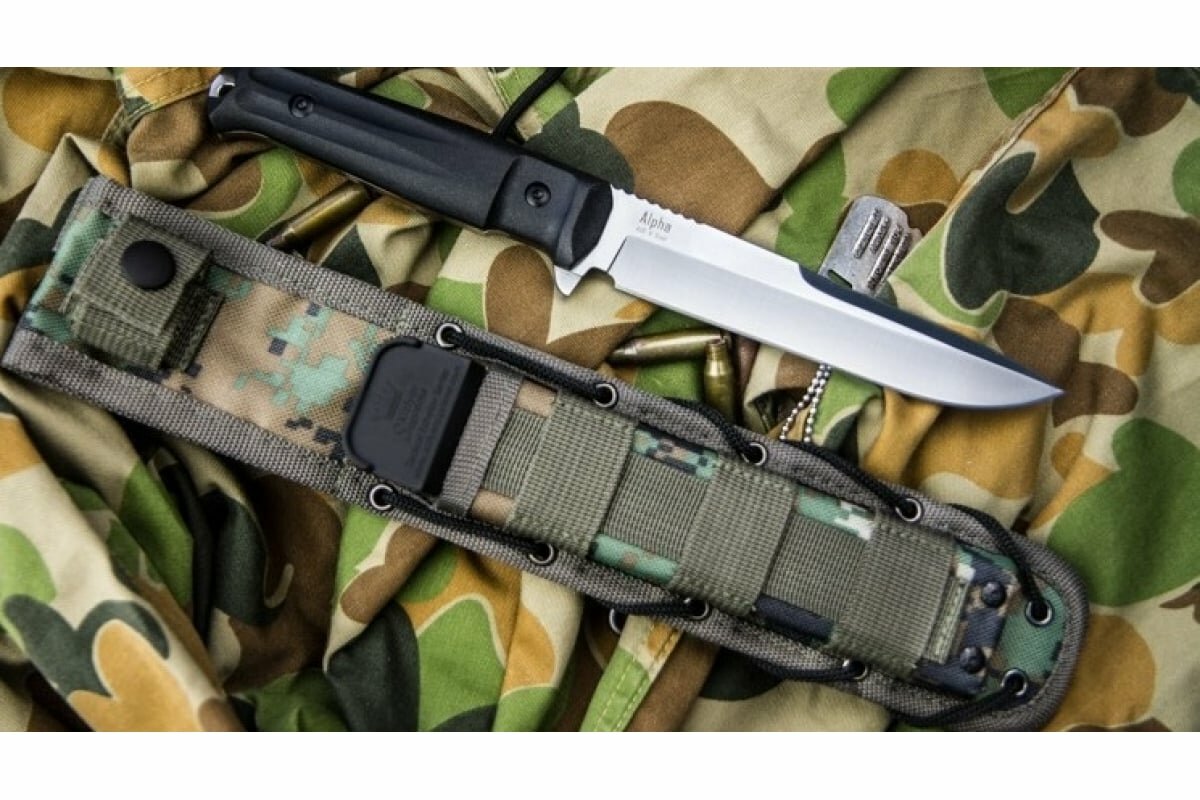 Нож Kizlyar Supreme Alpha AUS-8 SW BKH Camo (StoneWash, Black Kraton Handle, Camo MOLLE Sheath)