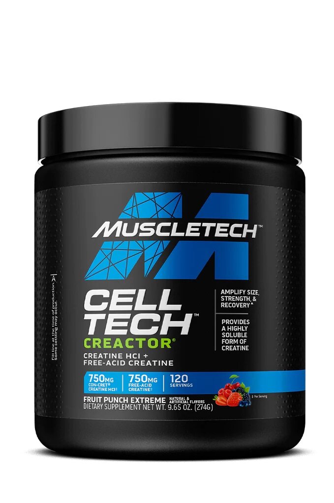 Muscletech, Cell Tech CREACTOR, Creatine HCl + Free-Acid Creatine, Fruit Punch Extreme, 9.51 oz (269 g)