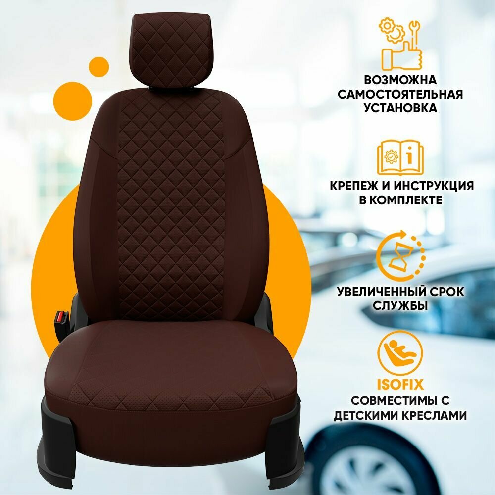Комплект чехлов Автопилот Ромб Hyundai Santa Fe II с 06-12г. Темно-коричневый +