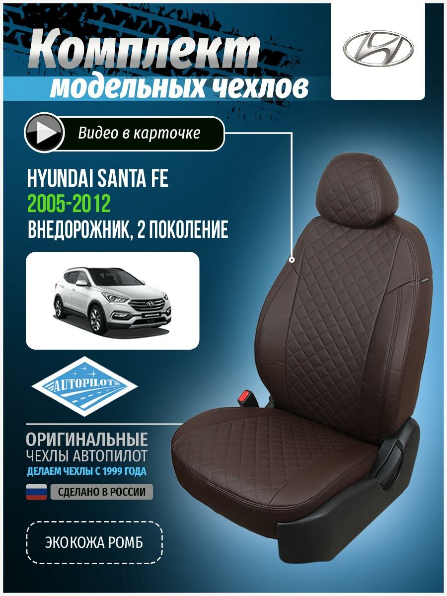 СохранитьЧехлы для Hyundai Santa Fe 2 2005-2012 Автопилот Шоколадный Экокожа с ромбом kha-sf-sf2-shosho-r интересное:
