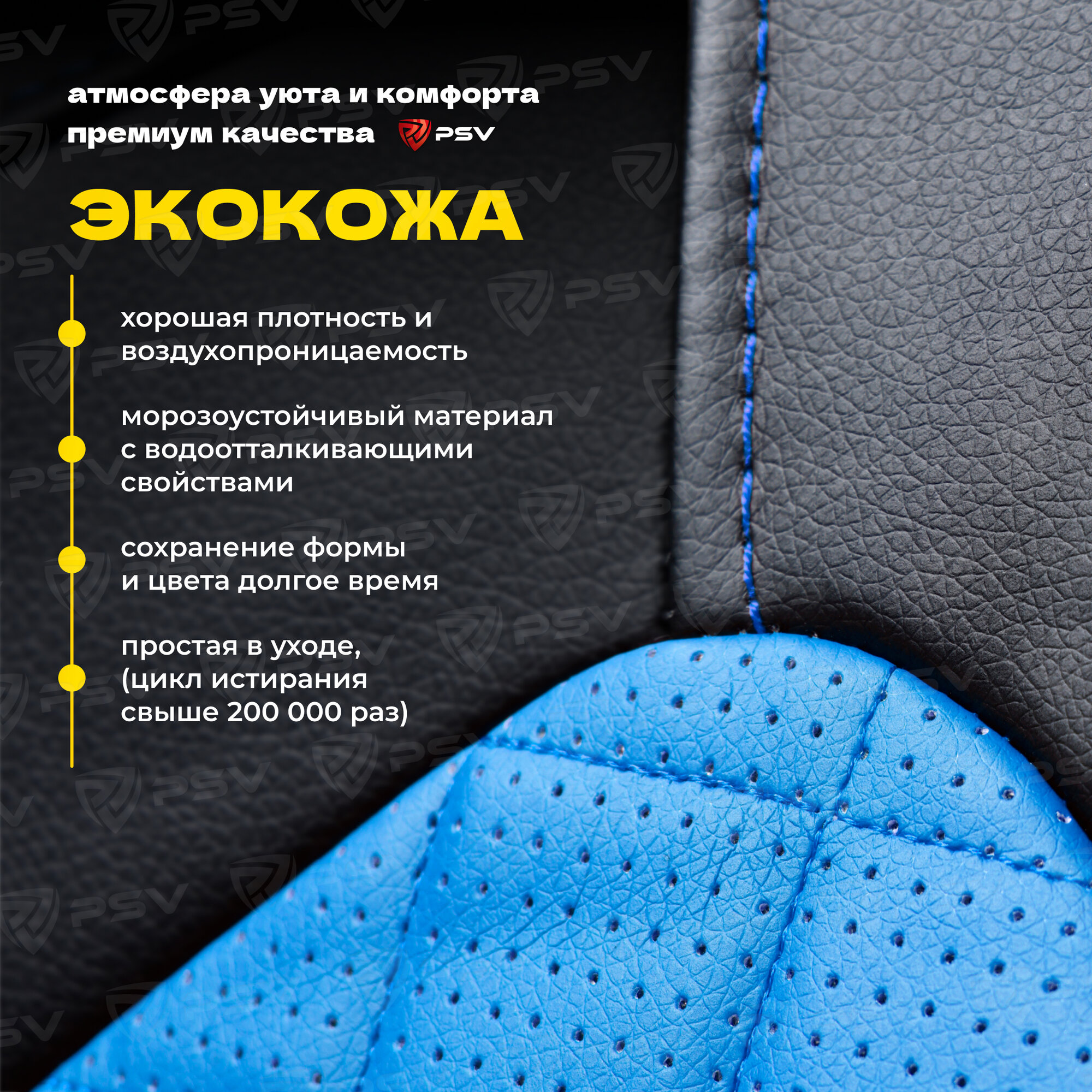 Чехлы PSV Elegant Next экокожа ромб синий, синяя отстрочка ромба черные PSV 135951 | цена за 1 шт