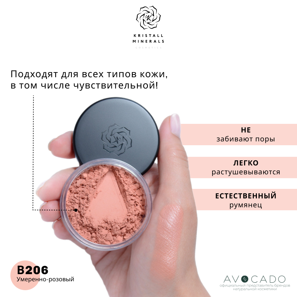 Купить Румяна сатиновые "Умеренно-розовый" В206 Kristall Minerals