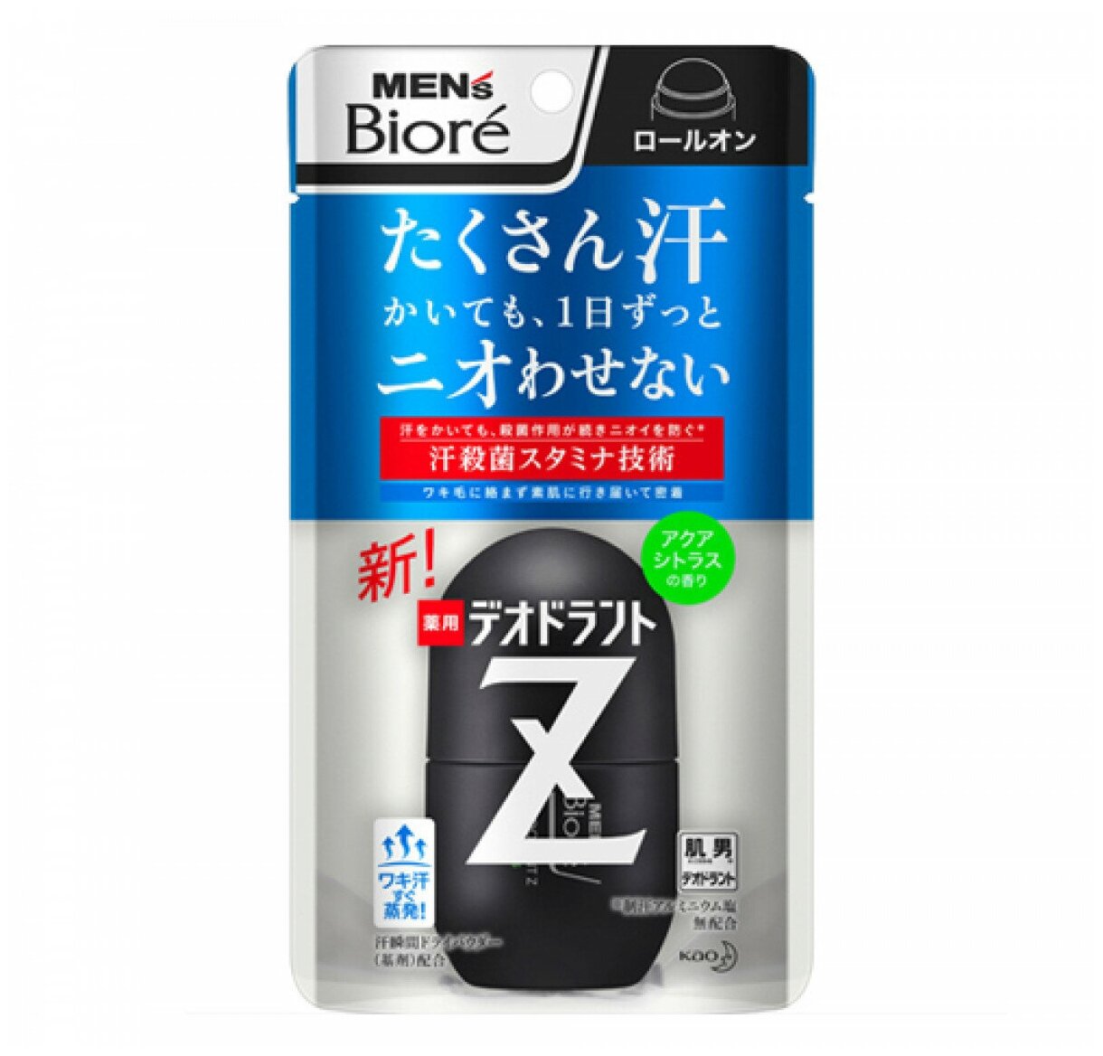 Kao Men's Biore Deodorant Z Роликовый дезодорант-антиперсперспирант мужской с антибактериальным эффектом без аромата 55 мл