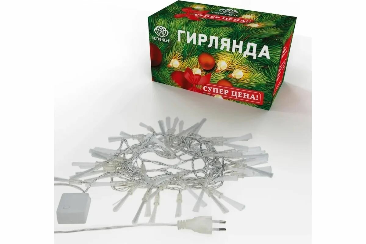 Купить Гирлянда электрогирлянда новогодняя светодиодная 48 LED Neon-Night Кисточки 5м с контроллером, холодное белое свечение