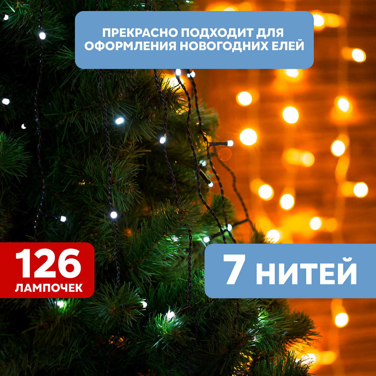 Гирлянда Neon-Night 235-076, 126 ламп, 180 см, белый свет, 7 нитей