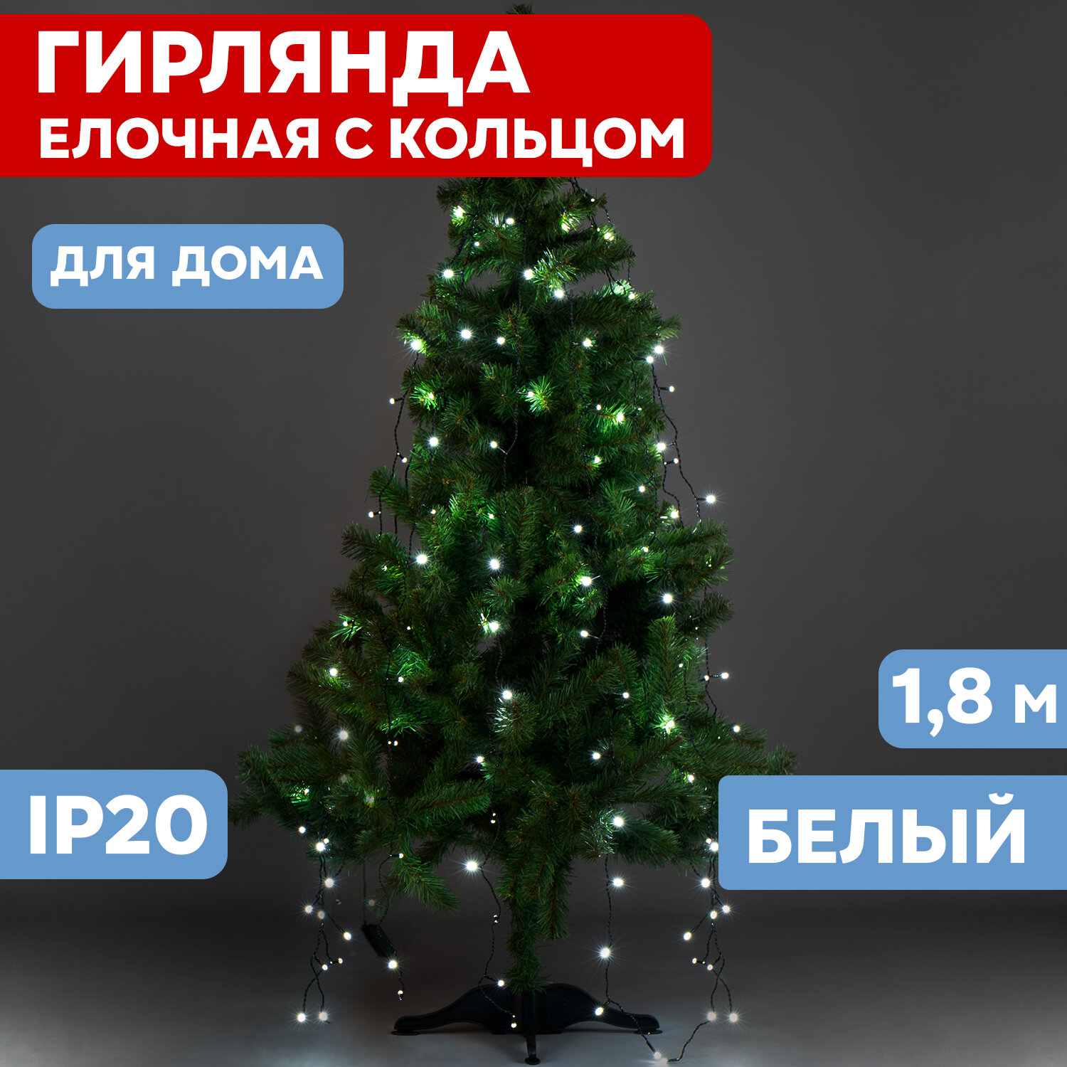 Елочная гирлянда с кольцом, 7 нитей по 1,8 метра, цвет диодов белый, не соединяется